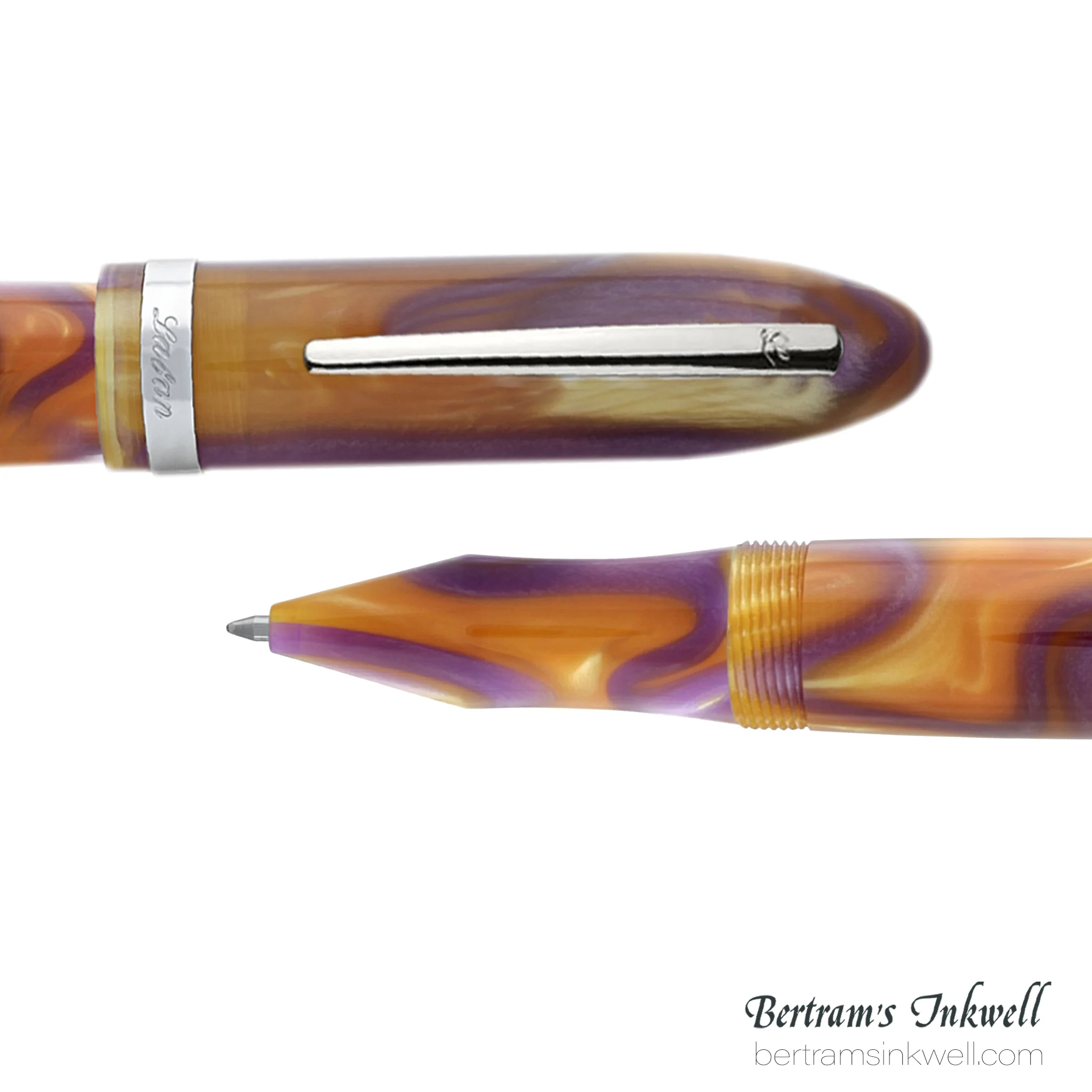 The Laban Mentor series is crafted from Italian resin and uses special hand-turned techniques resulting in a beautiful collector's item, available in a variety of captivating colors. This Laban rollerball pen also has the signature platinum silver trim, adding a touch of elegance. Laban, a pen company renowned for its high quality, continues its tradition with this rollerball pen, designed to withstand the most rigorous writing challenges. Please note, the pen uses a schmidt roller ball refill (not included). This Laban model is for you if you are a fan of oversized pens. It is ideal for people with larger hands and has a surprisingly manageable weight despite its size.