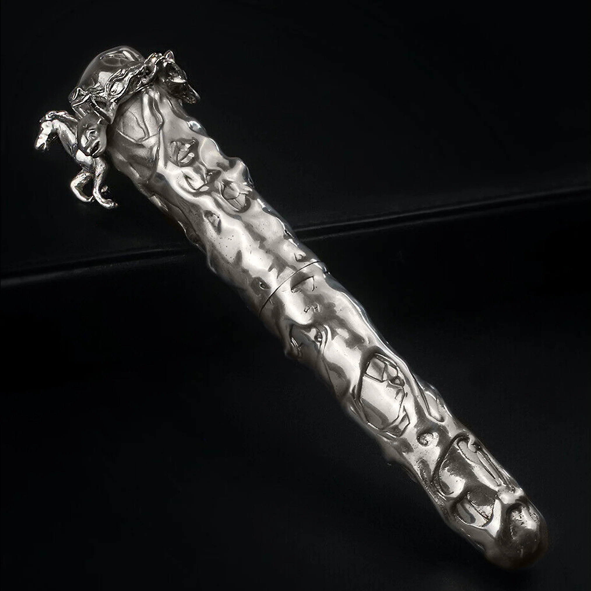 This exquisite writing instrument was handcrafted from solid sterling silver in the early 1990s to symbolize elements from the animal kingdom: Horse, Dolphin, Frog, Fox, Elephant, and Bear.
